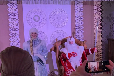 Дед Мороз и Снегурочка поздравляют самарцев на улице Ленинградской