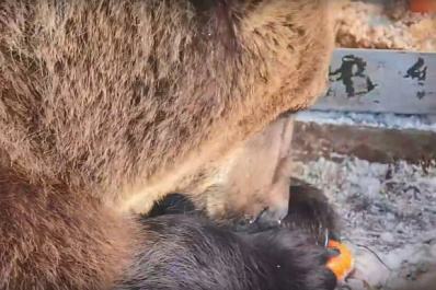 Медведь Умка из Самары впервые попробовал мандарины