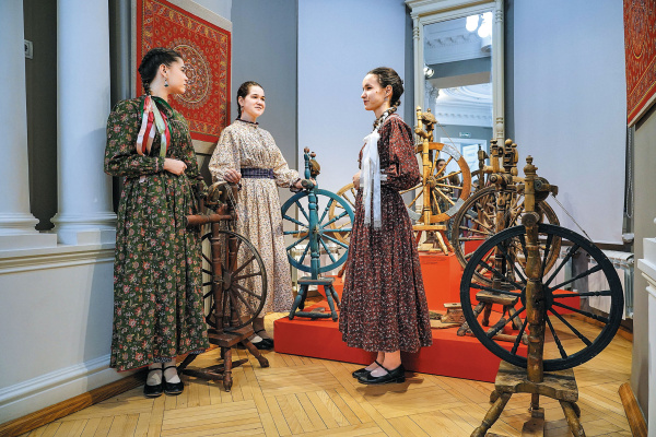 На выставке "Святки, прялки да колядки" можно увидеть предметы из фондов Детской картинной галереи, других музеев и частных коллекций.