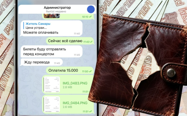 В посте уточнялось, что билеты паблик получил по бартеру, поэтому их стоимость ниже, чем на официальных площадках. Ольга написала по указанным контактам в мессенджере, обсудила условия и даты получения билетов с администратором канала, уточнила некоторые организационные моменты. Оплатить билеты предложили переводом по номеру телефона. Получателем денег значилась некая девушка, что насторожило Ольгу. Но продавец заверил: это карта его второй половинки, проблем не возникнет. В итоге Ольга все же перевела 15 тысяч рублей за четыре места.