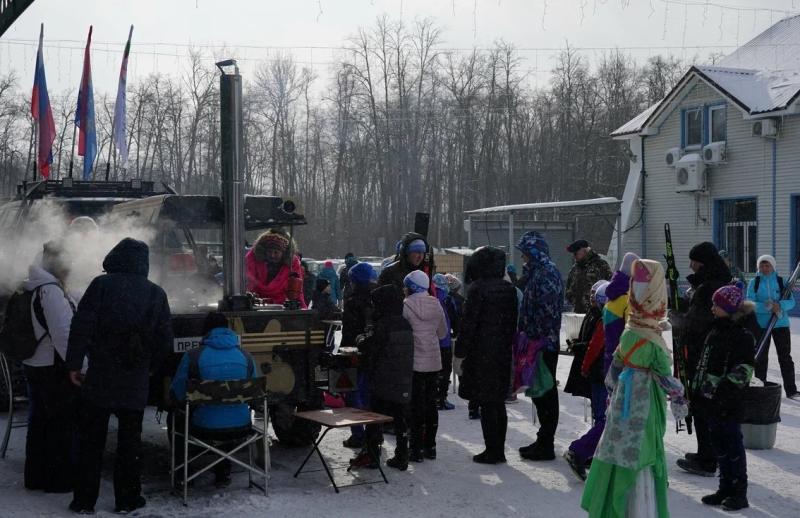Для участников и гостей, кроме самих гонок, организовали полевую кухню. Не обошлось и без традиционных масленичных блинов.