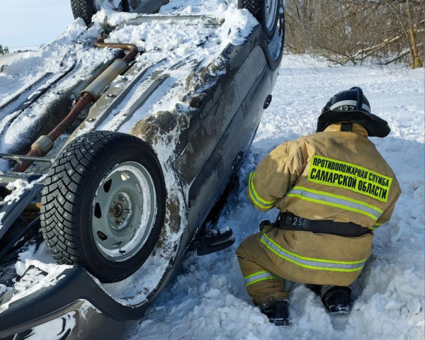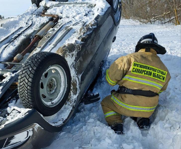 На трассе в Самарской области легковушка перевернулась в кювете