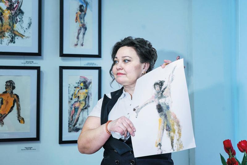 Главный источник вдохновения для художницы – люди. Среди представленных на выставке произведений есть графика с изображением гибких фигур в разных позах.