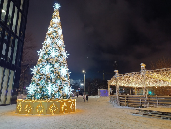 Для украшения набережной собираются установить 12-метровую искусственную елку на 2-й очереди под Маяковским спуском, а также смонтировать гирлянды, новую иллюминацию и организовать каток площадью около 4 тыс. кв. м.