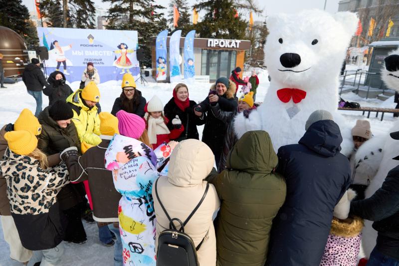 Освоившись на льду, при горячей поддержке зрителей более сотни участников фестиваля взялись за руки и объединились в дружный флэшмоб на коньках – "Хоровод дружбы".