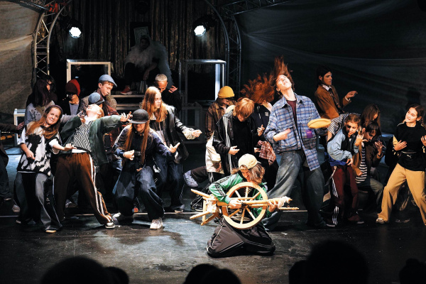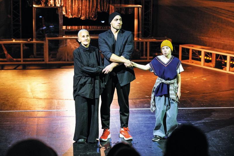 В первом варианте история получалась скорее про взросление. Хайруллина-рассказчица сплетала сюжет о коллективном герое, и герой этот был ребенком. Хотя приходил к той же финальной точке – к Волге. Тот спектакль говорил и со зрителями, но все-таки больше – с самими участниками, почти с полусотней детей на сцене. В анонсирующих текстах "Лес" объяснял персонажа "Он" как "условного творца, создавшего человеков". Так вот первый спектакль был про этих человеков. Новый – про творца.