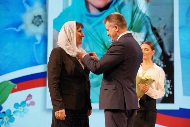 Вячеслав Романов также вручил 24 многодетным мамам региональные знаки отличия "Материнская доблесть" 1-й и 2-й степени.