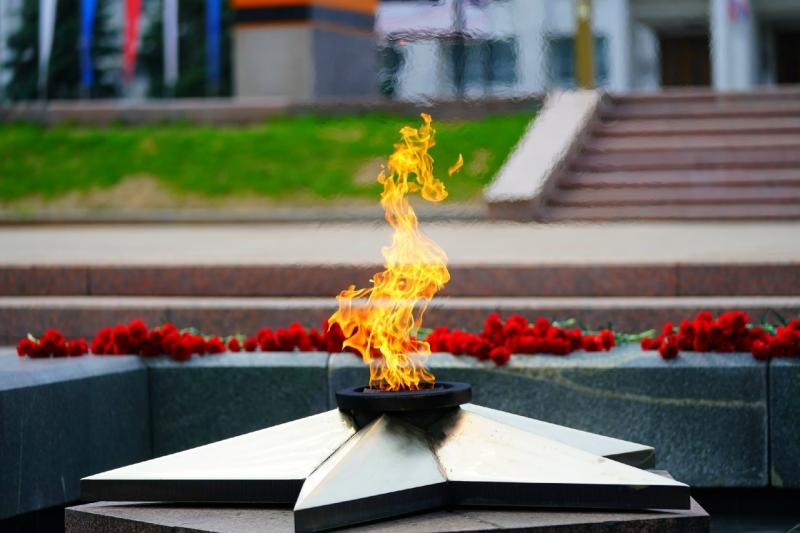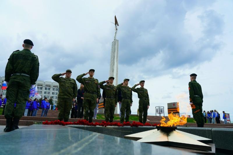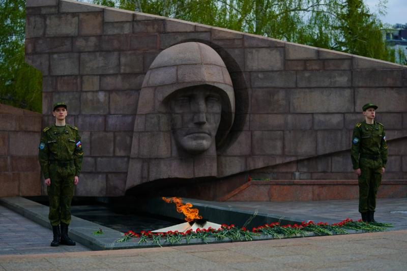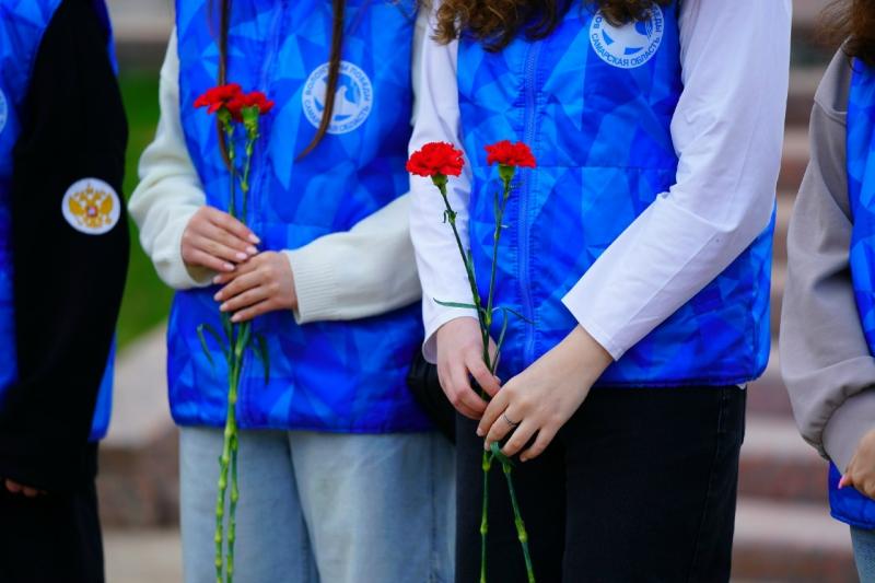 Волонтеры Победы, юнармейцы, участники военно-патриотических молодежных объединений, активисты "Молодой гвардии" и Поискового движения России возложили цветы к Вечному огню и горельефу "Скорбящей Матери-Родине" на площади Славы в Самаре.