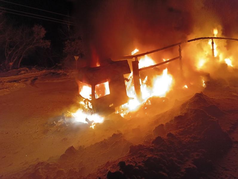 В Самарской области 23 января грузовик сгорел после столкновения с легковушкой