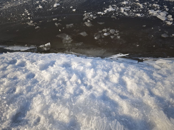 По данным замеров, произведенных 19 февраля, лед на Волге местами стал более тонким, чем ранее.