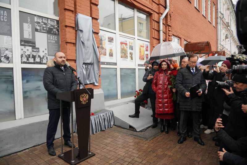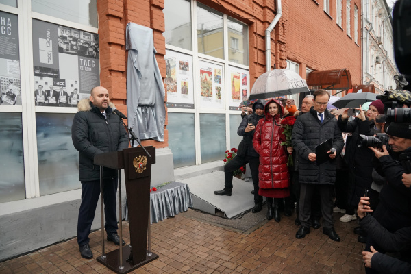 Губернатор Вячеслав Федорищев поздравил коллектив и ветеранов ТАСС с открытием мемориальной доски: